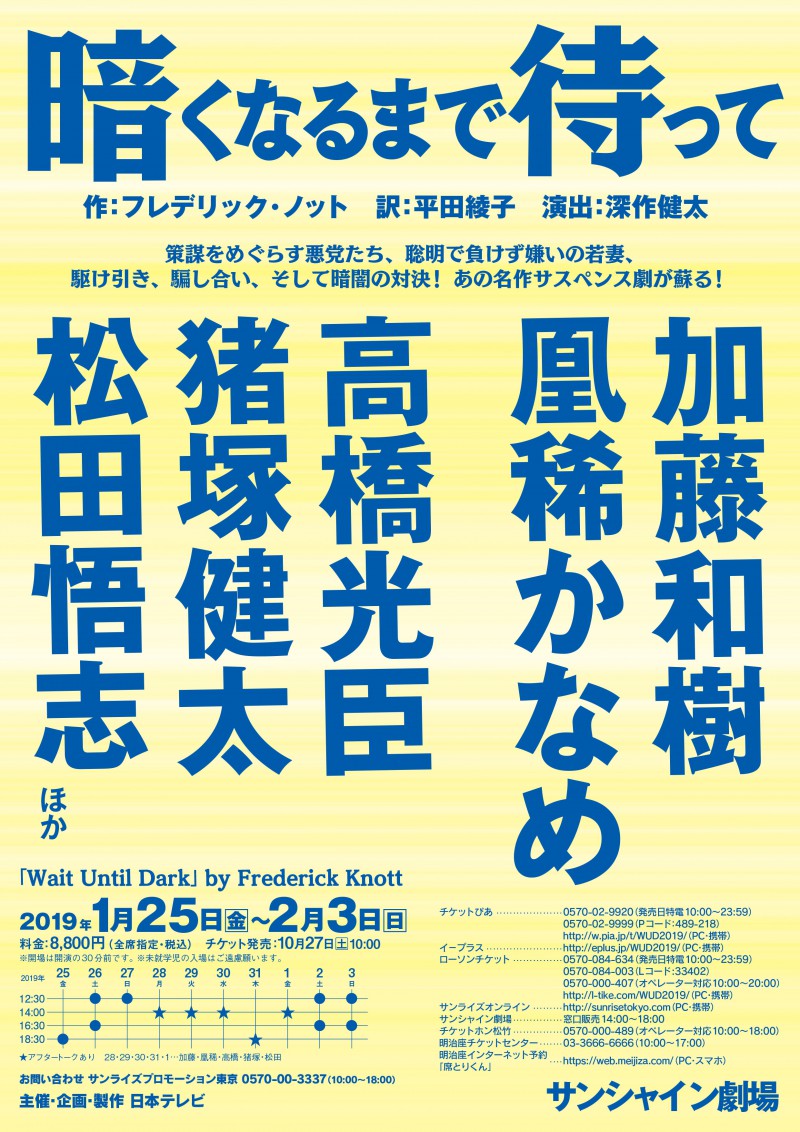 凰稀かなめ主演、サスペンス劇の傑作『暗くなるまで待って』2019年1月上演決定!